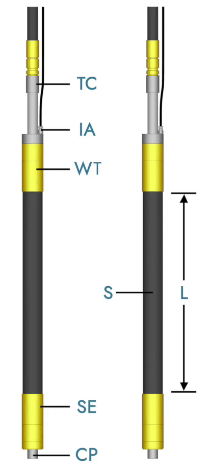 del elemento dilatable se determina con respecto a la utilización en un tubo o en una perforación abierta. Los dilatables largos se utilizan en perforaciones abiertas con el fin de evitar que la inyección de lechada de cemento pase alrededor de ésta al momento de realizar la inyección.