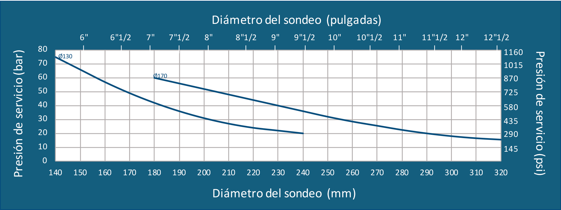 (con excepción de los diámetros Ø130 y 170 que están construidos sistemáticamente en versión