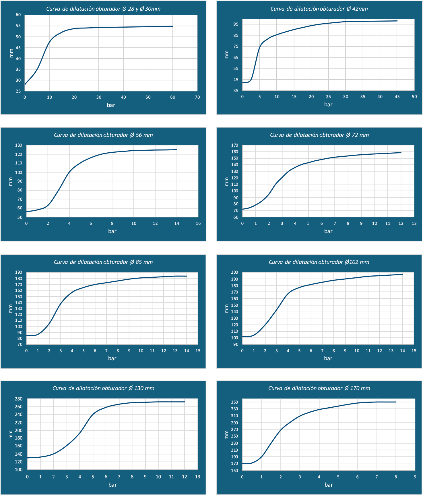 para los obturadores de Ø28, 30, 42, 56, 72, 85, 102, 130y 170mm