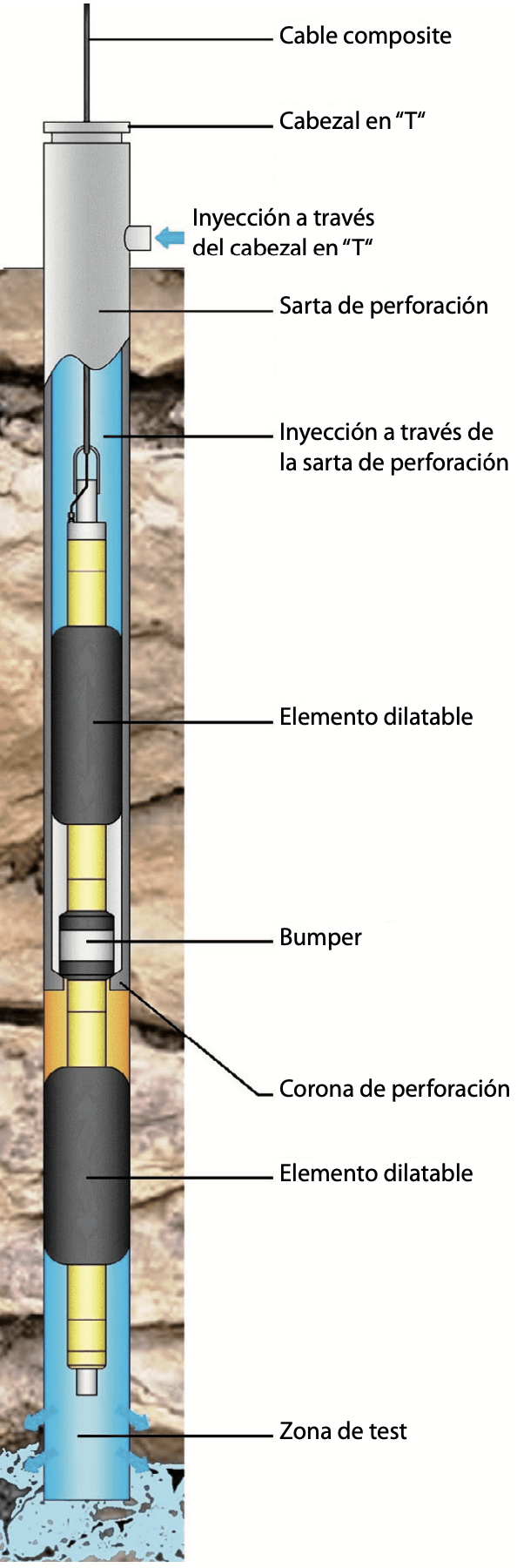 Para realizar pruebas de permeabilidad a medida que el sondeo avanza a baja profundidad, los obturadores se pueden equipar de un anillo de posicionamiento el cual se va a sentar por el interior de la corona de perforación. La inyección se realiza a través de un flexible de inyección.