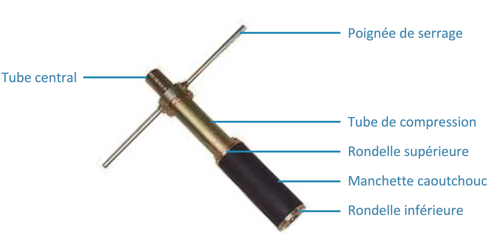Les obturateurs mécaniques sont principalement constitués d'un tube central et d'un manchon en caoutchouc ; la dilatation du manchon est obtenue par serrage à l'aide d'une manivelle.
