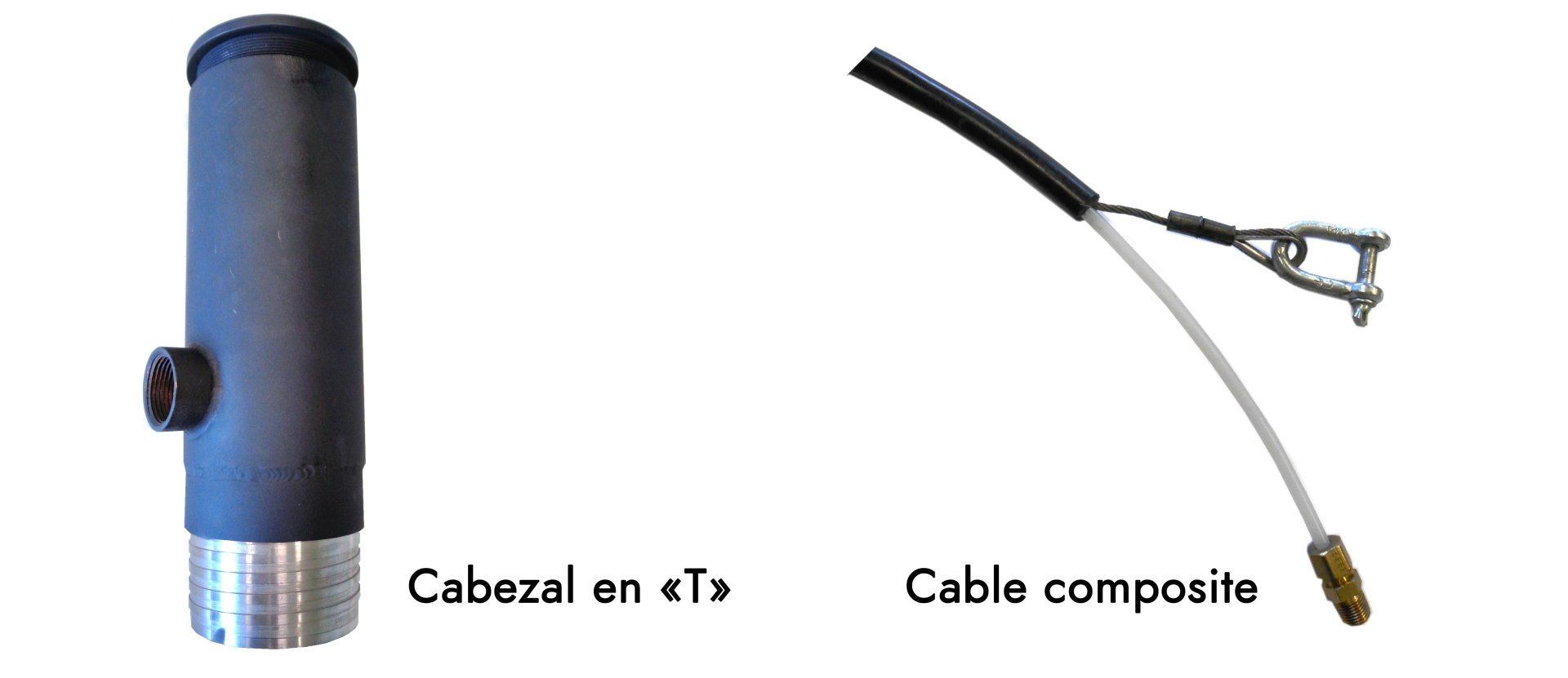 El obturador "Wireline" se compone de un adaptador de posición que viene a sentarse sobre el respaldo interior de La Corona. Este adaptador permite posicionar los elementos dilatables. El "cable composite" compuesto de un tubo de nylon para el inflado y de un cable de acero para maniobrar el obturador "Wireline" à la superficie. En la boca de la sarta se coloca una cabeza especial en "T". Esta cabeza en "T" mantiene la presión durante el ensayo.